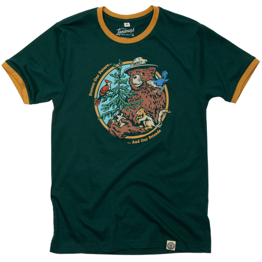 Smokey's Friends Ringer T-shirt: Glacier Blue/Redwood