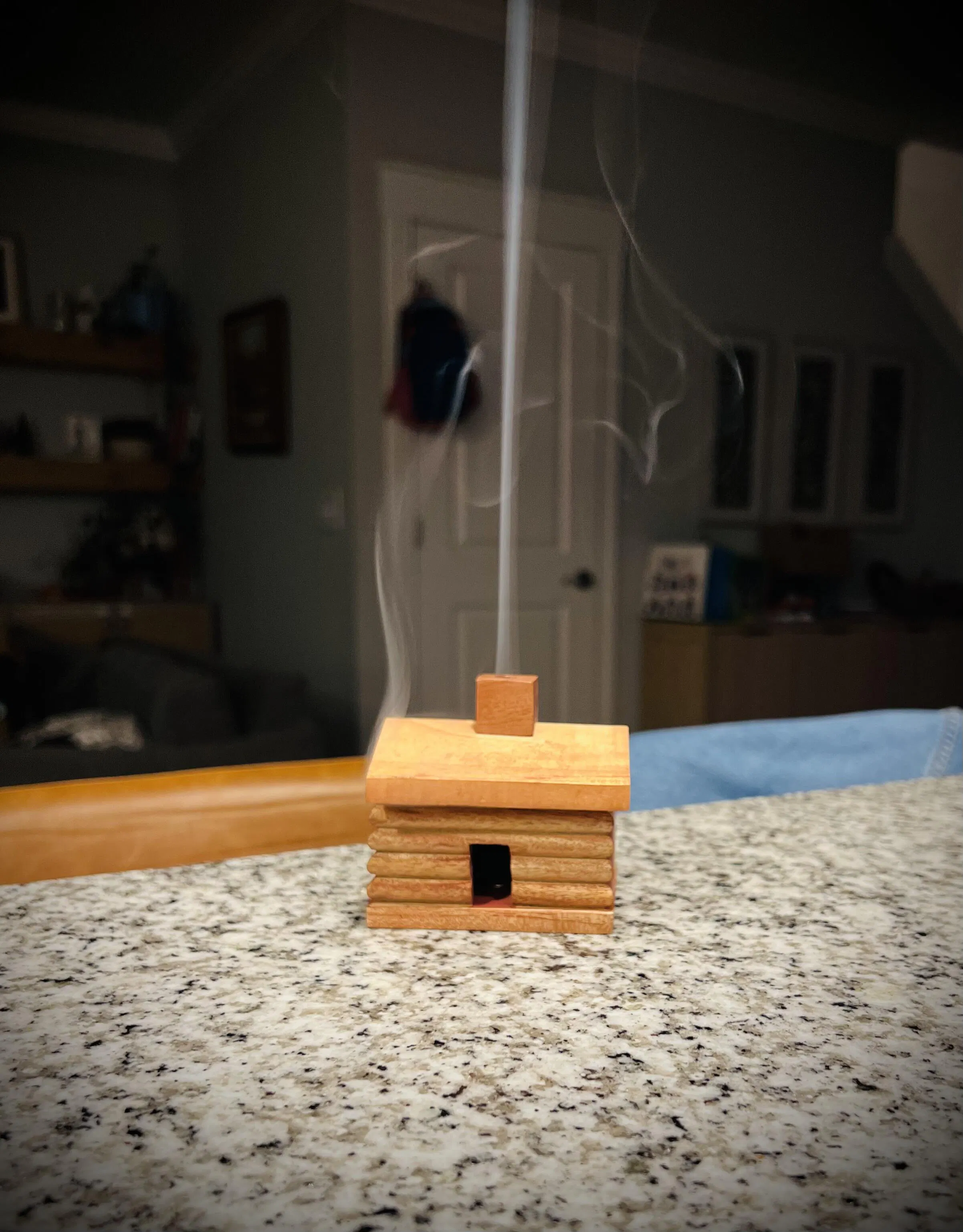 - One small wood log cabin incense burner.