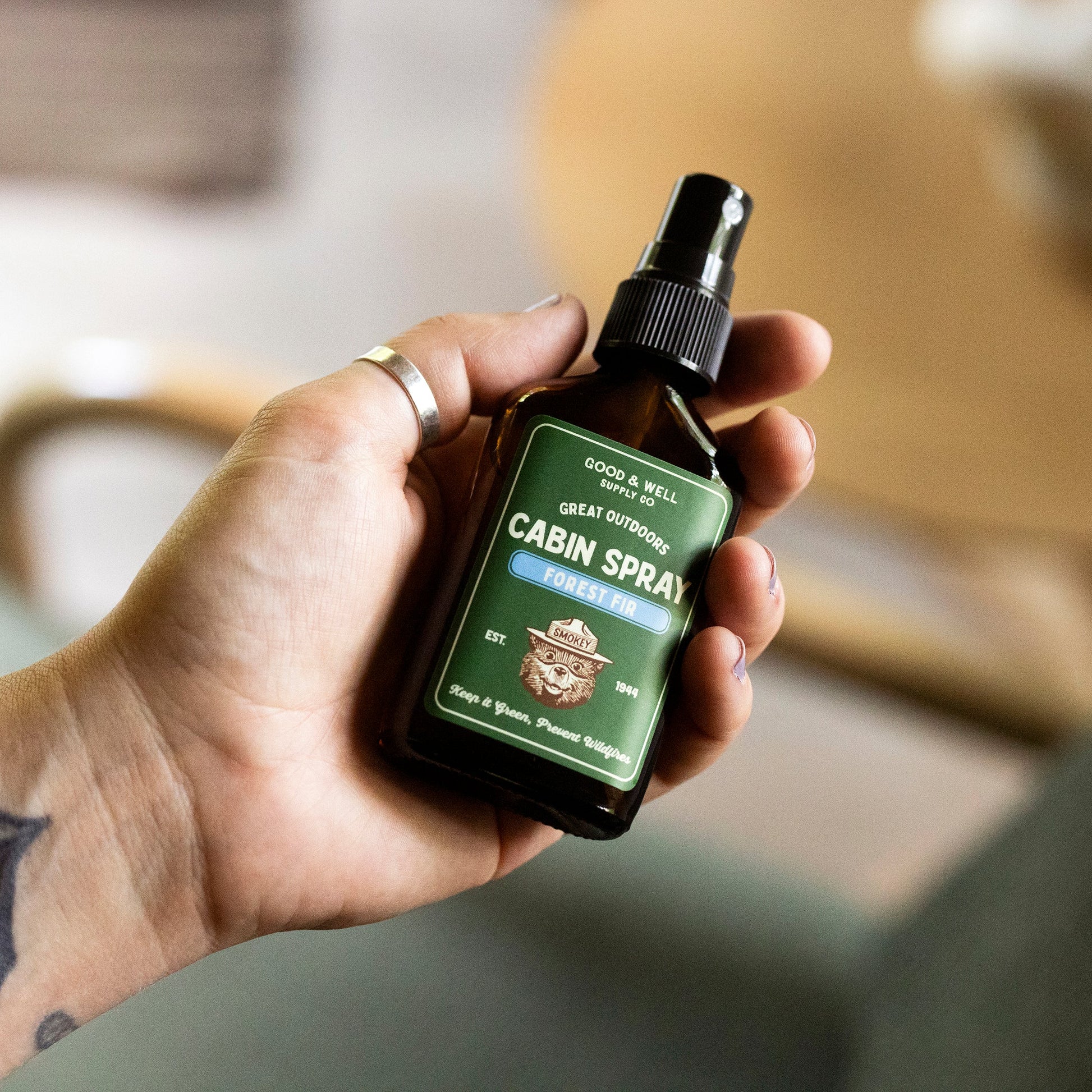 Breathe in the aromas of the great outdoors. Inspired by the iconic lands Smokey Bear has long protected, our Cabin Spray fills your space with the fresh scents of America's beloved trees—while supporting wildfire prevention and education. Crafted with clean, ethically sourced ingredients and designed to honor the land we all share.