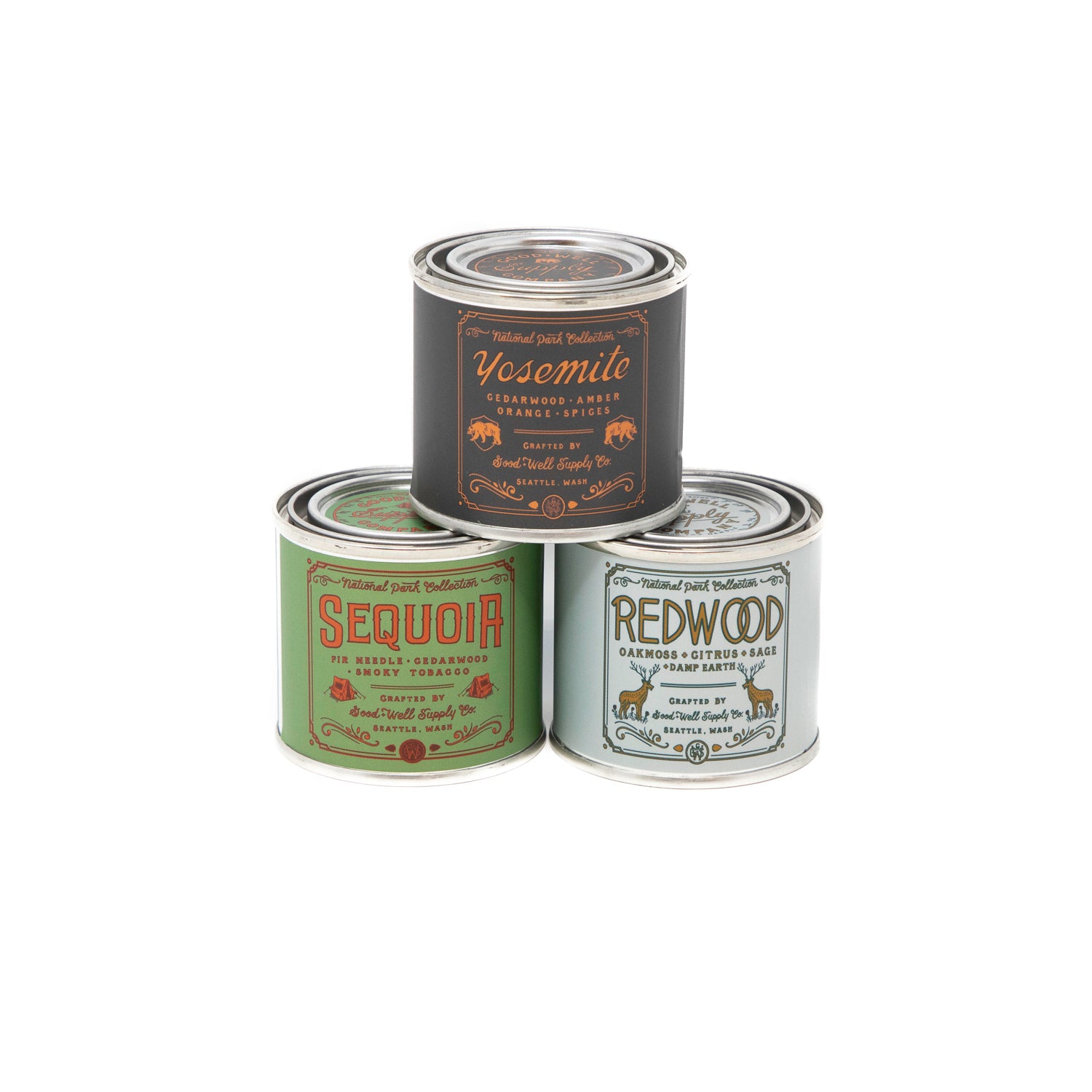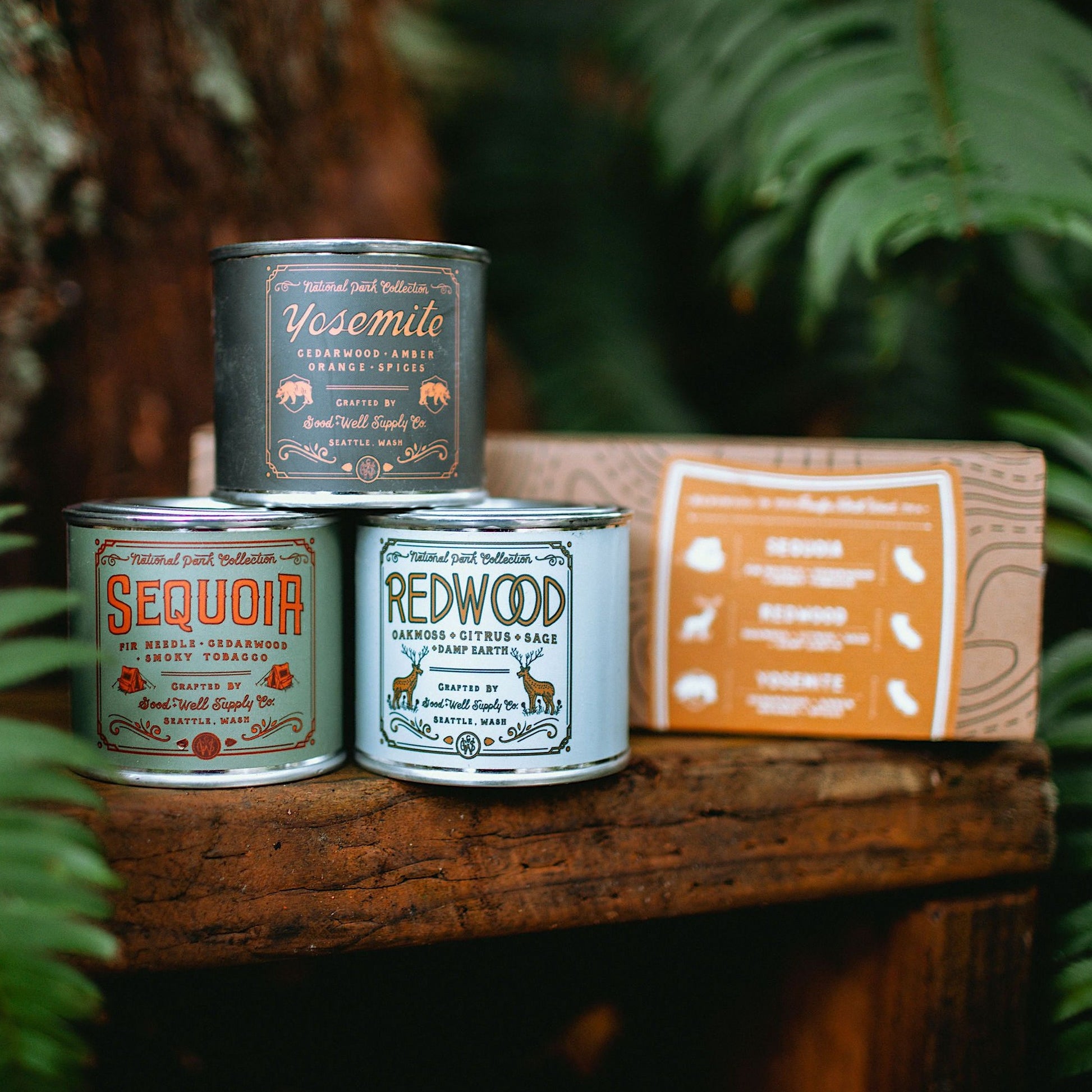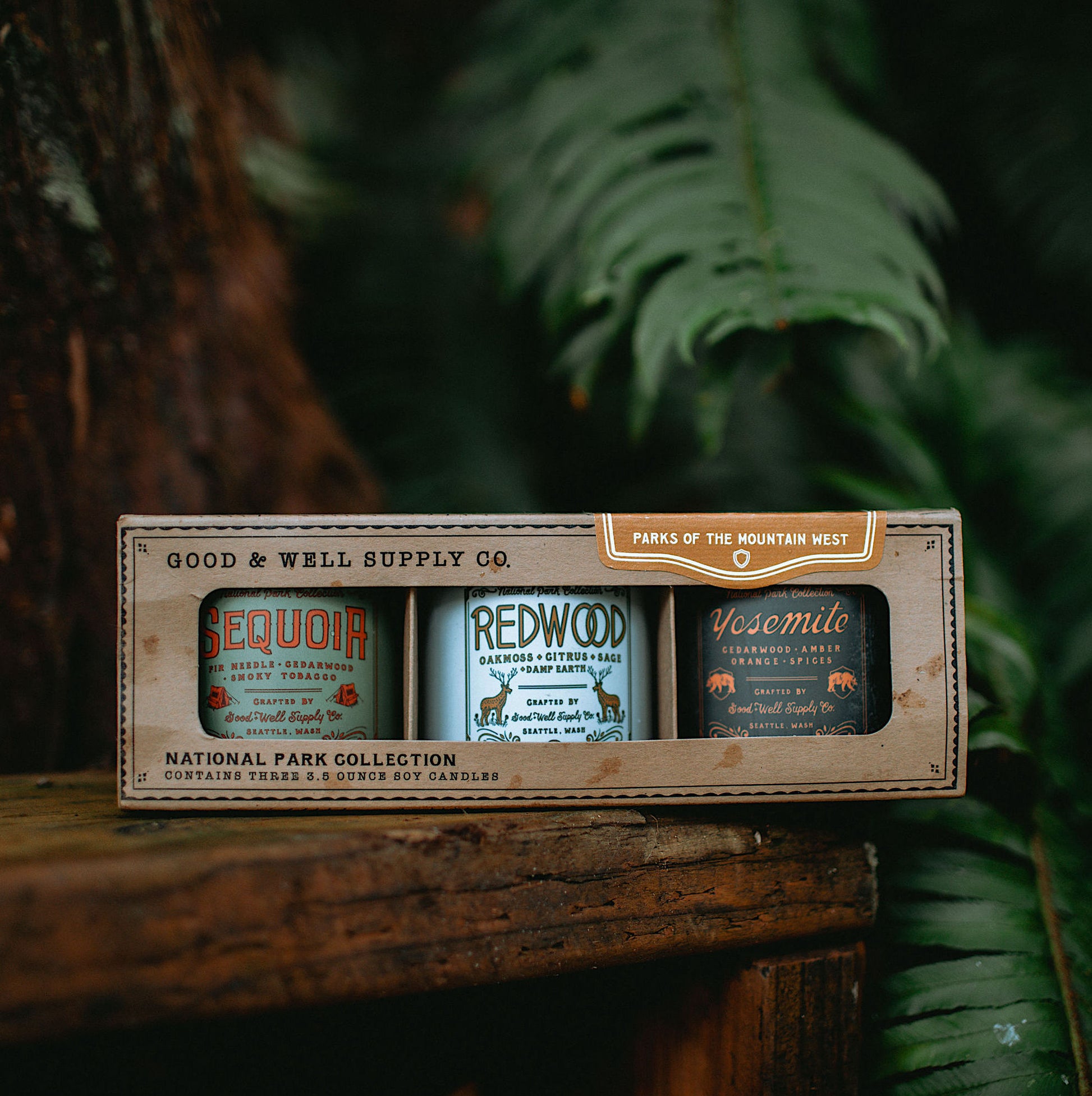These gift-able sets of three, 4 oz. candles represent some of the most visited regions and National Parks around America. Though they're petite, these candles are mighty; boasting our classic National Parks scents that are sure to fill the room with all the scents of the Great Outdoors. Plus, they look great in our ready-to-gift topographical kraft boxes!