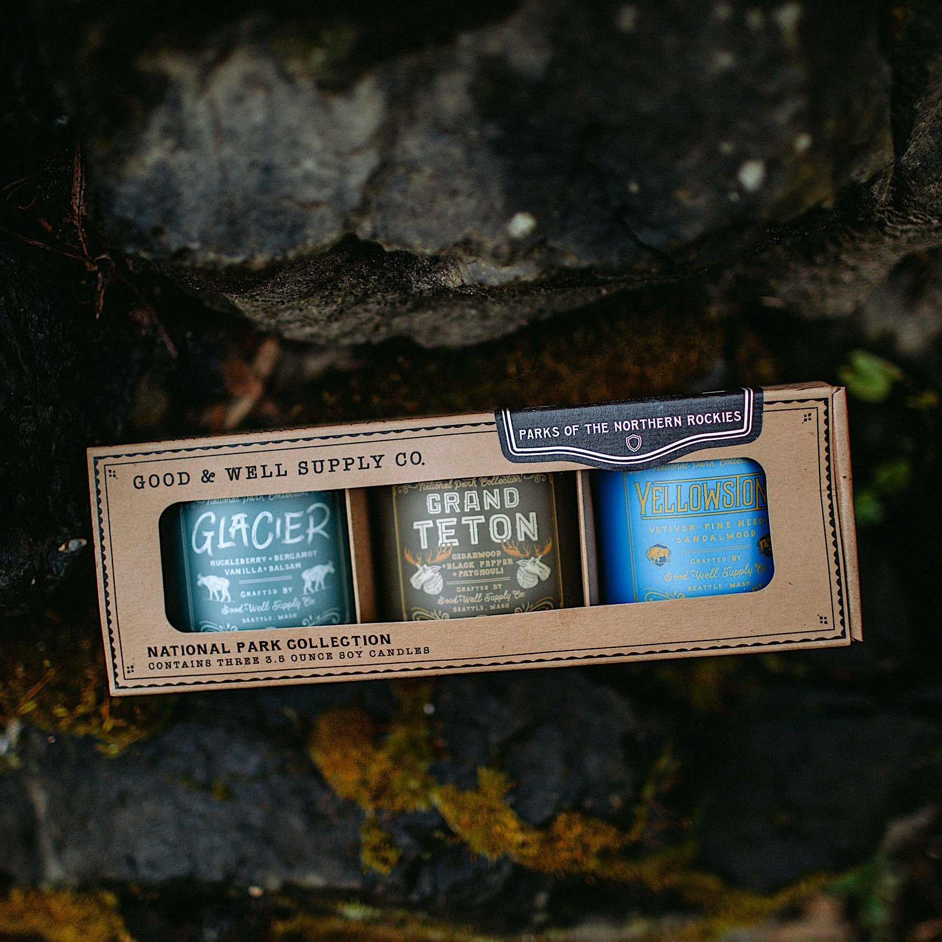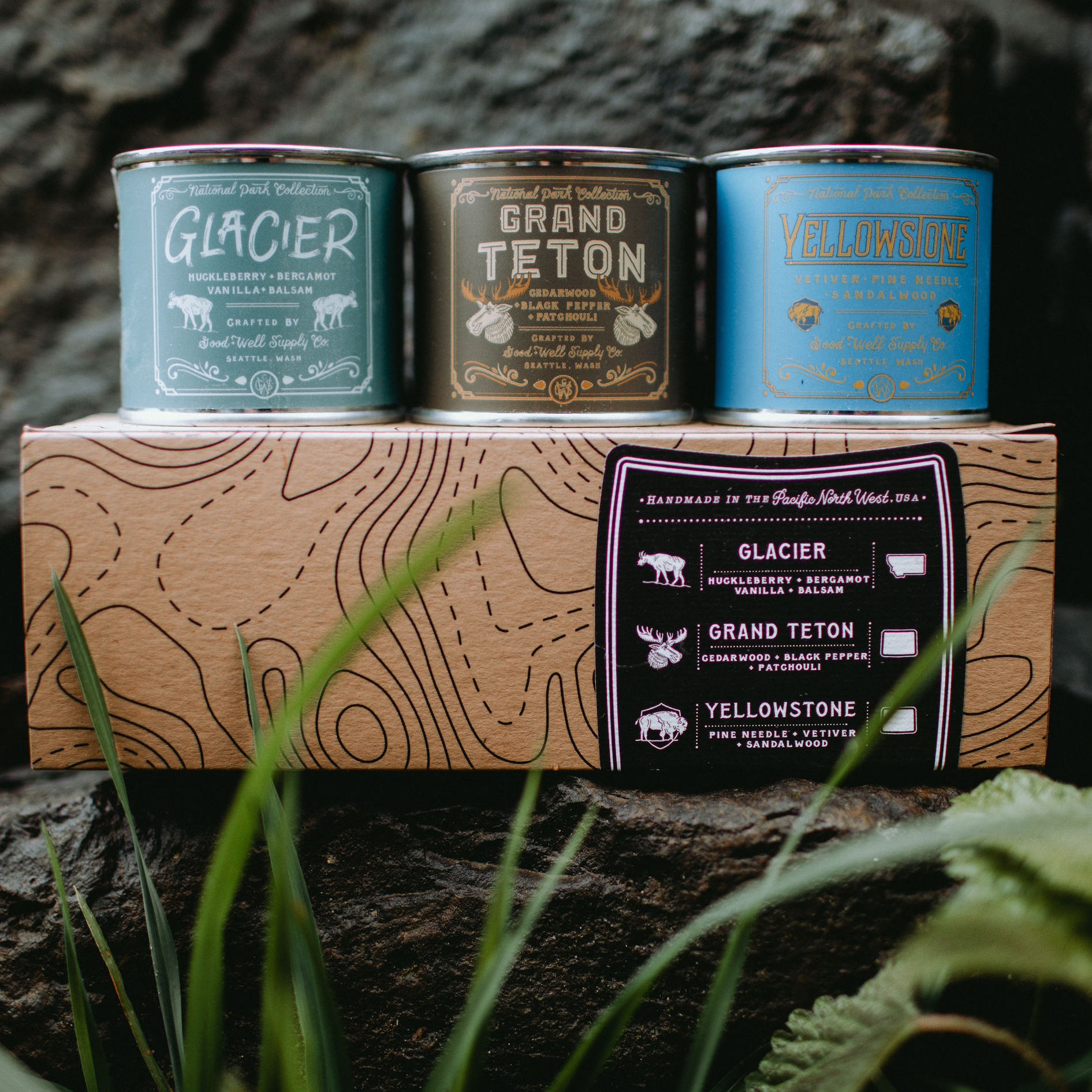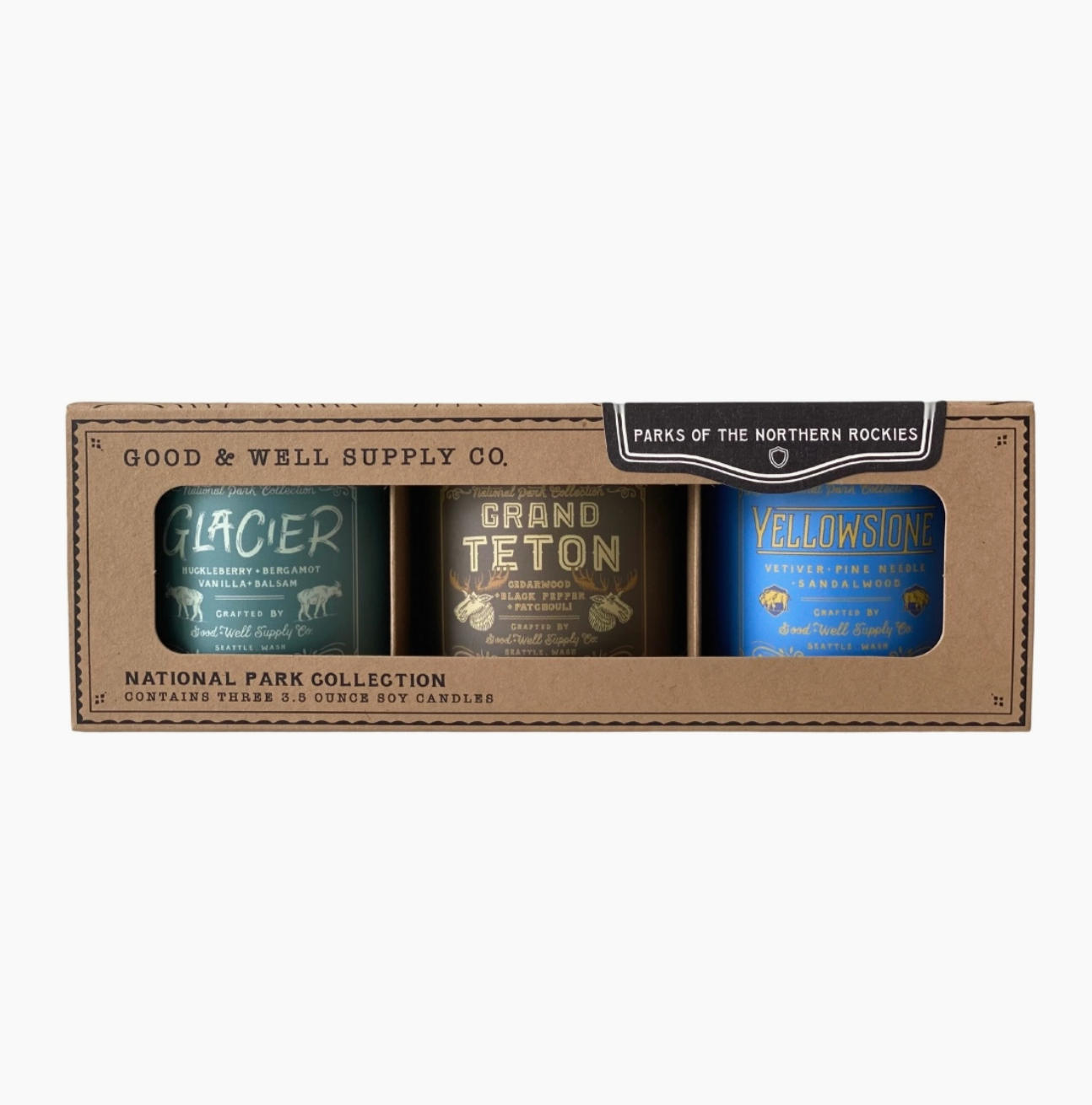 These gift-able sets of three, 4 oz. candles represent some of the most visited regions and National Parks around America. Though they're petite, these candles are mighty; boasting our classic National Parks scents that are sure to fill the room with all the scents of the Great Outdoors. Plus, they look great in our ready-to-gift topographical kraft boxes!