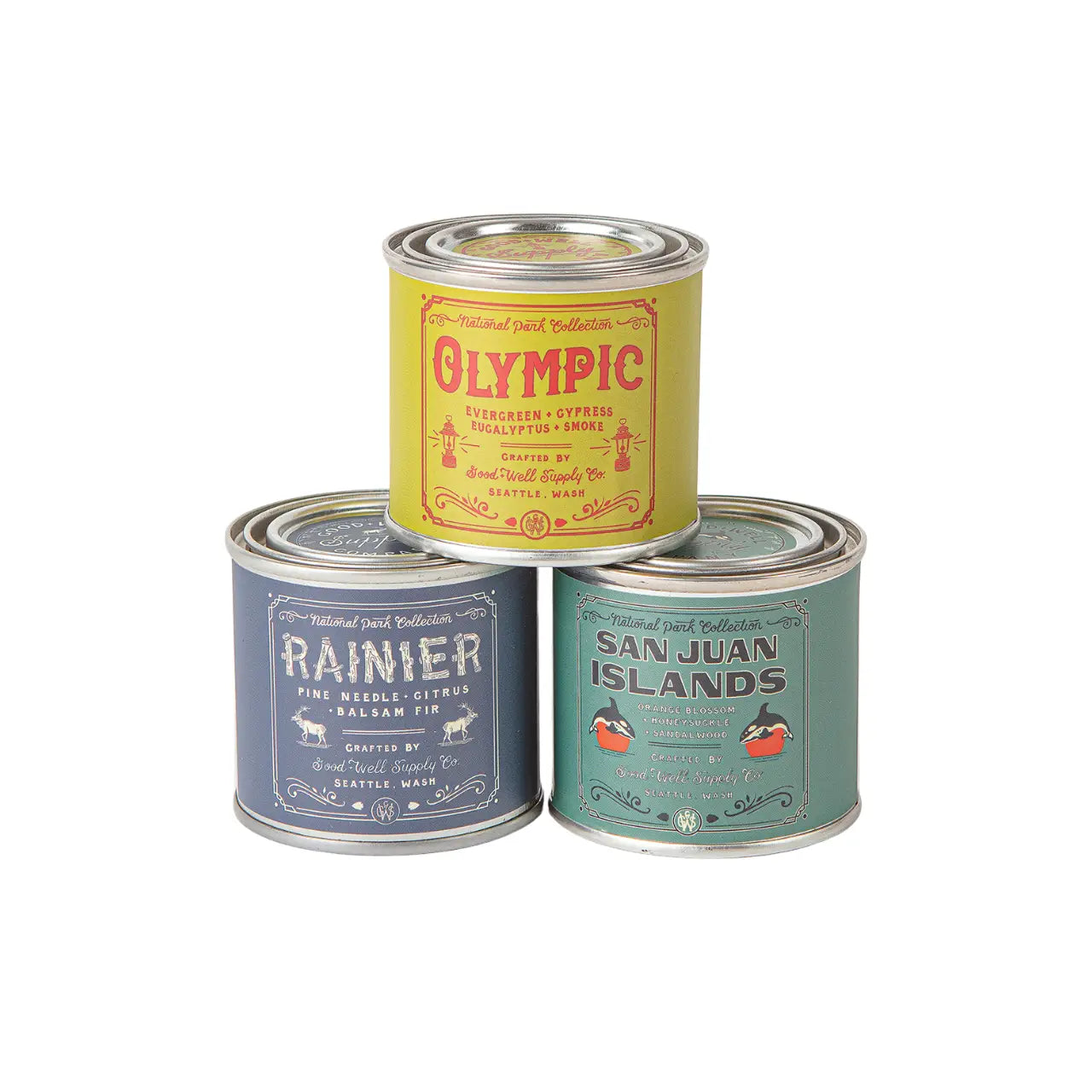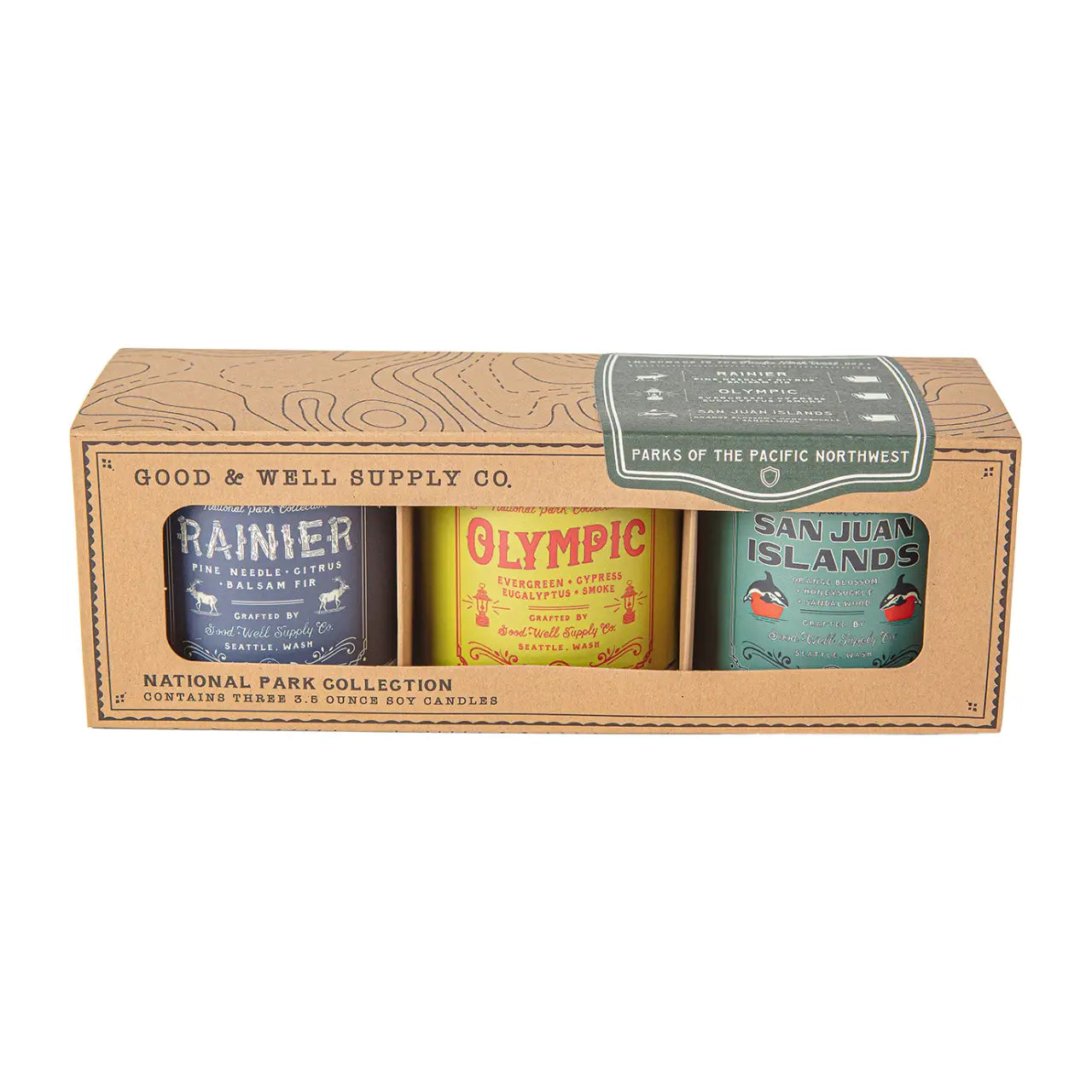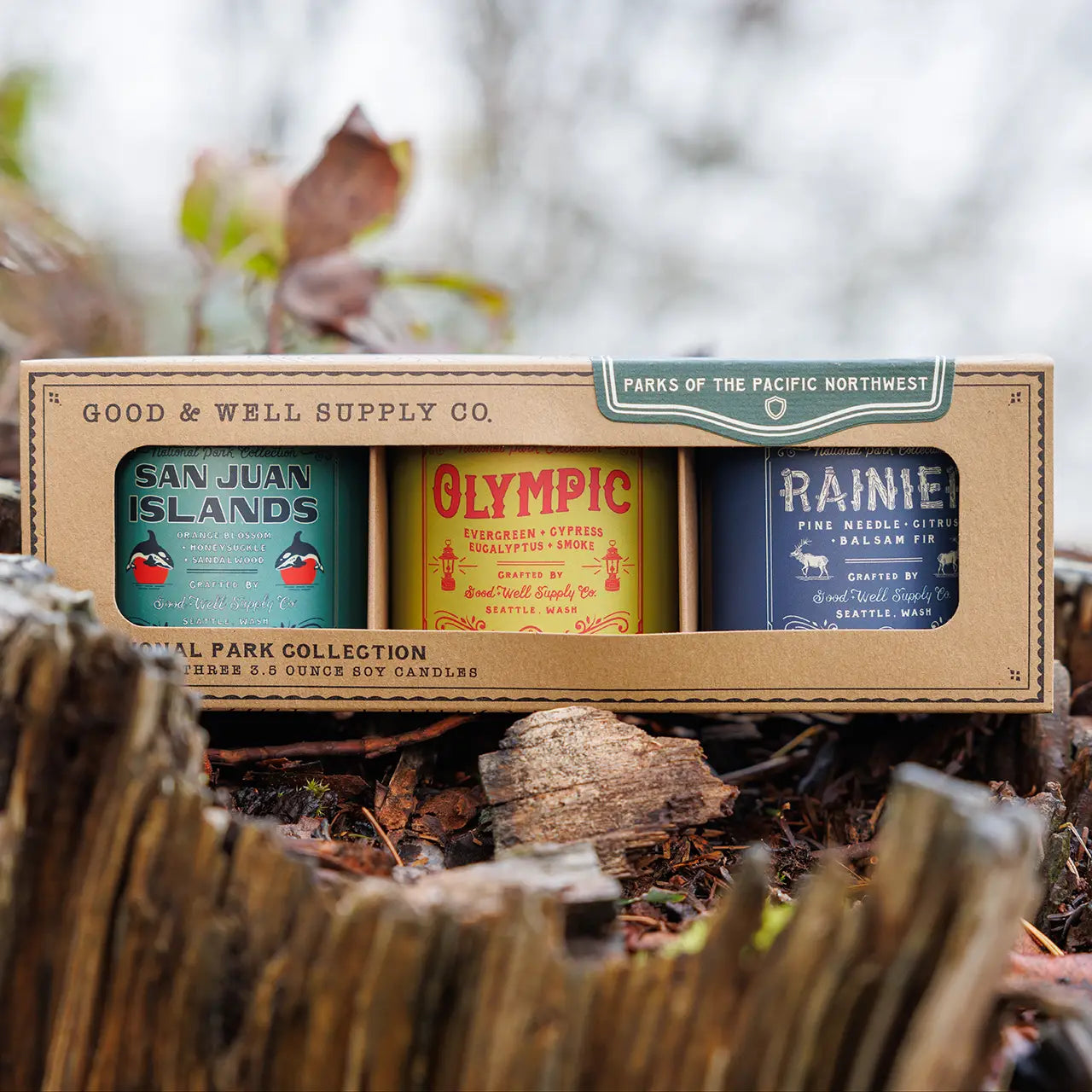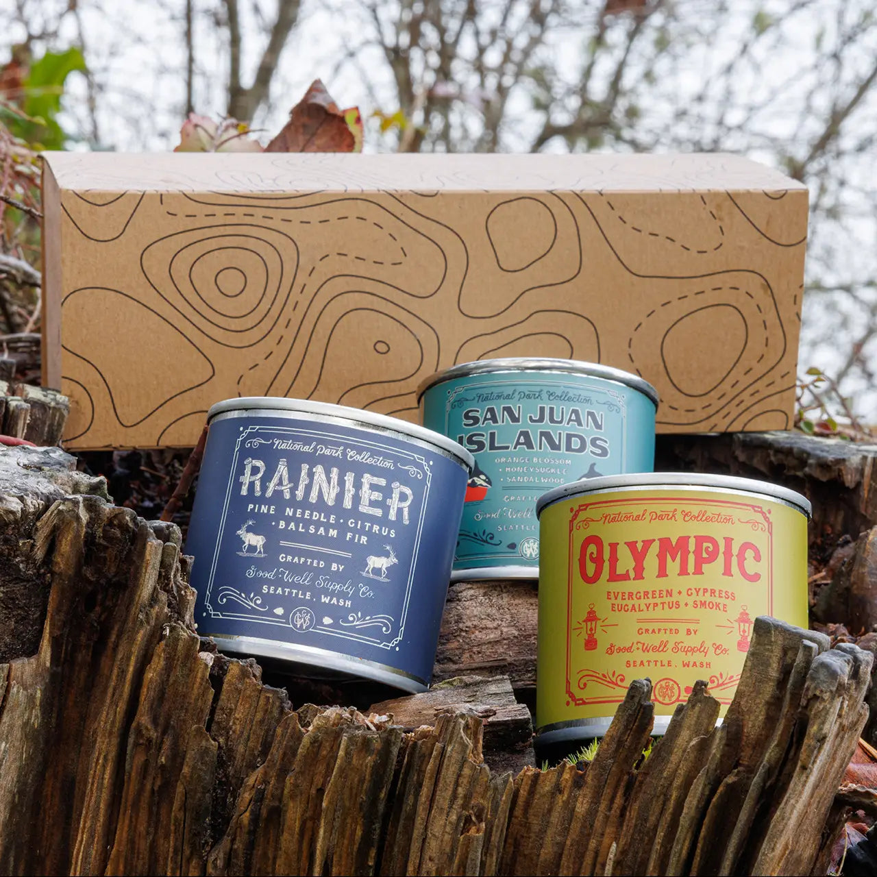 These gift-able sets of three, 4 oz. candles represent some of the most visited regions and National Parks around America. Though they're petite, these candles are mighty; boasting our classic National Parks scents that are sure to fill the room with all the scents of the Great Outdoors. Plus, they look great in our ready-to-gift topographical kraft boxes!