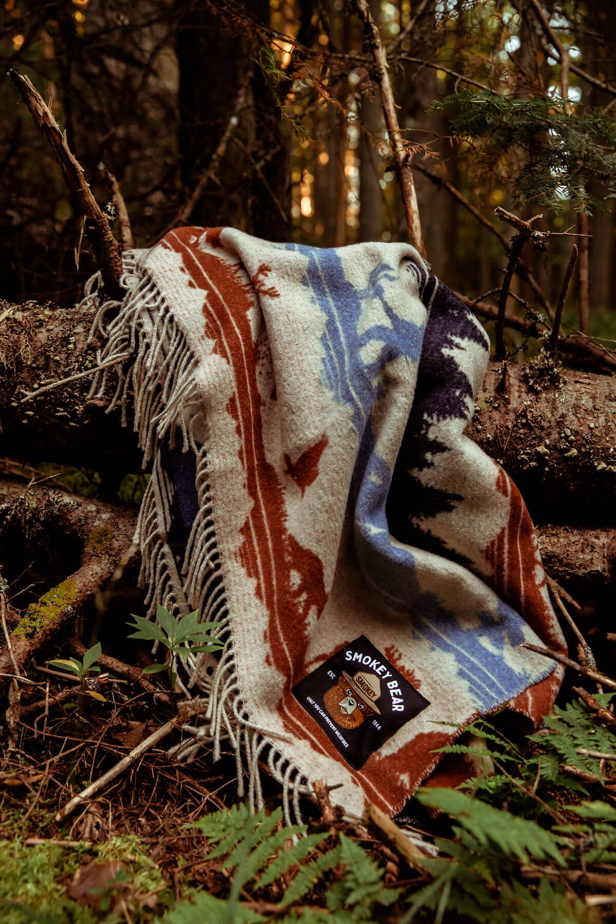 This blanket depicts the story of America's wilderness, Smokey's friends, and emphasizes the significance of proper wildfire prevention. It is a perfect addition to your home, cabin, or for your next outdoor adventure. Since 1944, Smokey Bear has promoted a message of preventing unwanted human-caused wildfires. A portion of the proceeds from officially licensed Smokey Bear merchandise helps fund the nationwide wildfire prevention campaign.