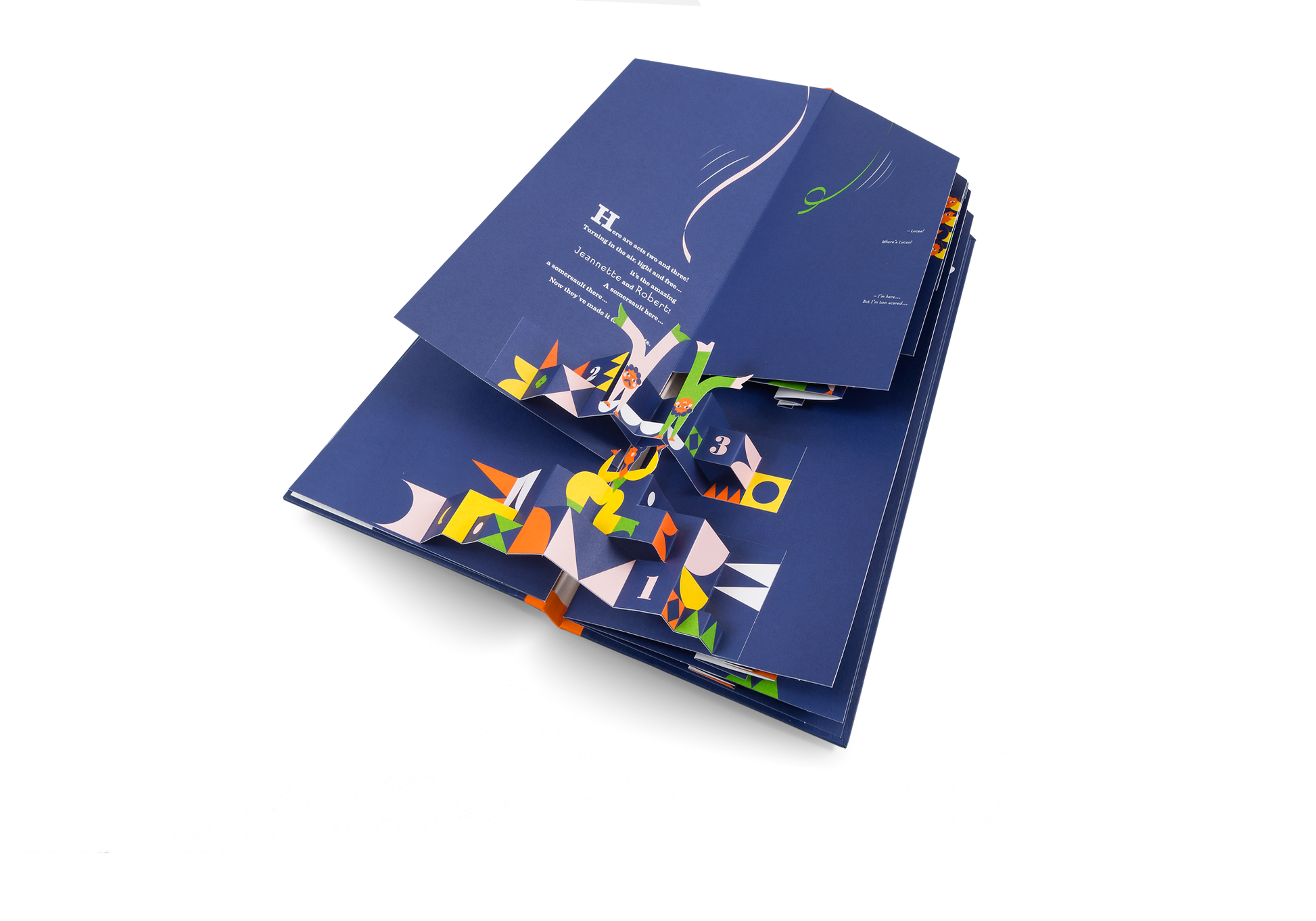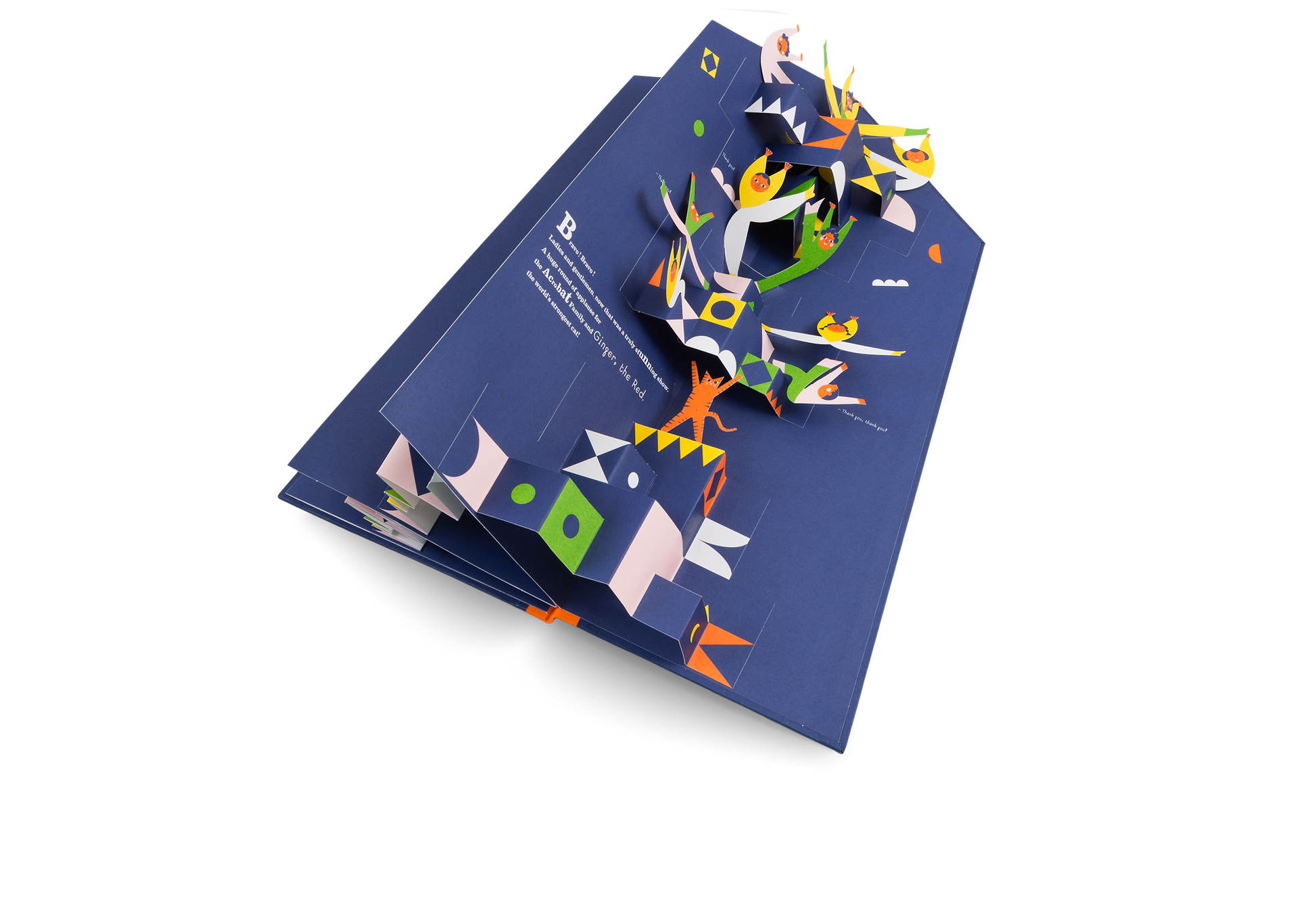 Ladies and gentlemen, boys and girls, welcome to the circus! Tonight you will witness the world premiere of the amazing, the incomparable, the unforgettable … Acrobat Family! Up and up they go, watch the family of acrobats balance on top of each other to create a magnificent show! This charming, collectable pop-up teaches valuable counting skills and the joys of working as a team. As you turn the pages, count not one but ten characters balance one on top of the other, creating ever more daring shapes. This beautifully crafted book draws the reader into the magical world of the acrobats, whilst stimulating the imaginations of children and adults alike.